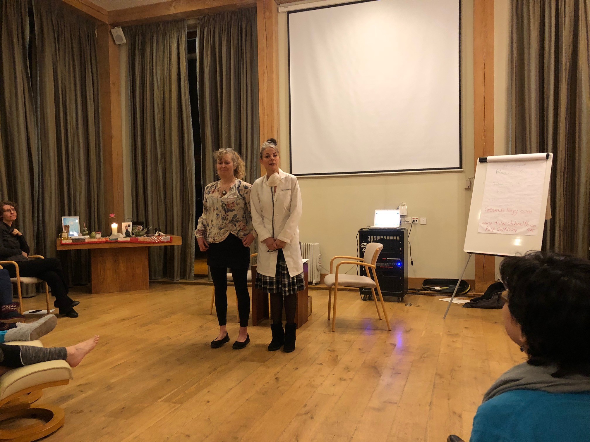 The highlight for us was the final event of Saturday night – a comedy cabaret written and performed by Fiona Shakeela Burns (organiser of the retreat) and Jessica Richards, both of whom have fought and beat cancer. The show opened with a sketch of the two extremes of opinion one may face when diagnosed with cancer – one with a mainstream doctor and the other with a holistic therapist. The former poignantly highlighted how often risky, or even potentially harmful treatments are recommended based on whether they’re “clinically worth the risk”, while the latter reassured the patient that although they must cut out all the dietary ‘pleasures’ in life, everything is still great because they can still indulge in plenty of coffee- (“up the backside”).