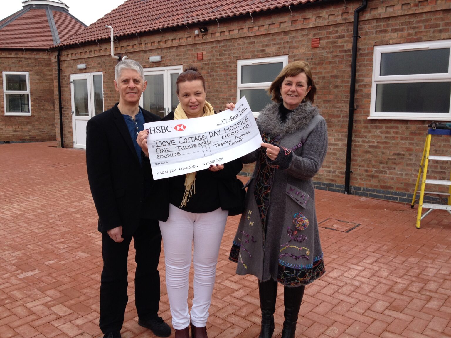 Together Against Cancer present Dove Cottage Day Hospice with a cheque for £1000 towards completing their beautiful new extension. This is just one of the many organisations that benefit from our help, more information on Dove Cottage here.